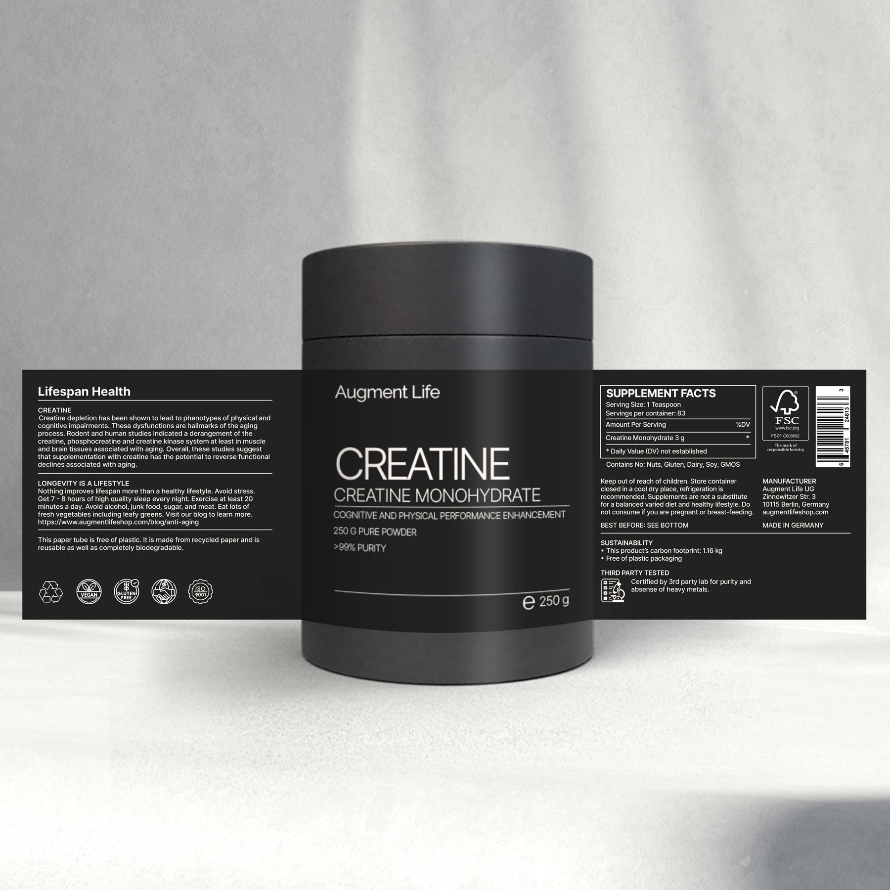 Unsere Nahrungsergänzungsmittel sind vegan, glutenfrei, koscher und halal. Sie werden nach den höchsten Standards der Nahrungsergänzungsmittelindustrie hergestellt, um sicherzustellen, dass Sie das bestmögliche Produkt erhalten.