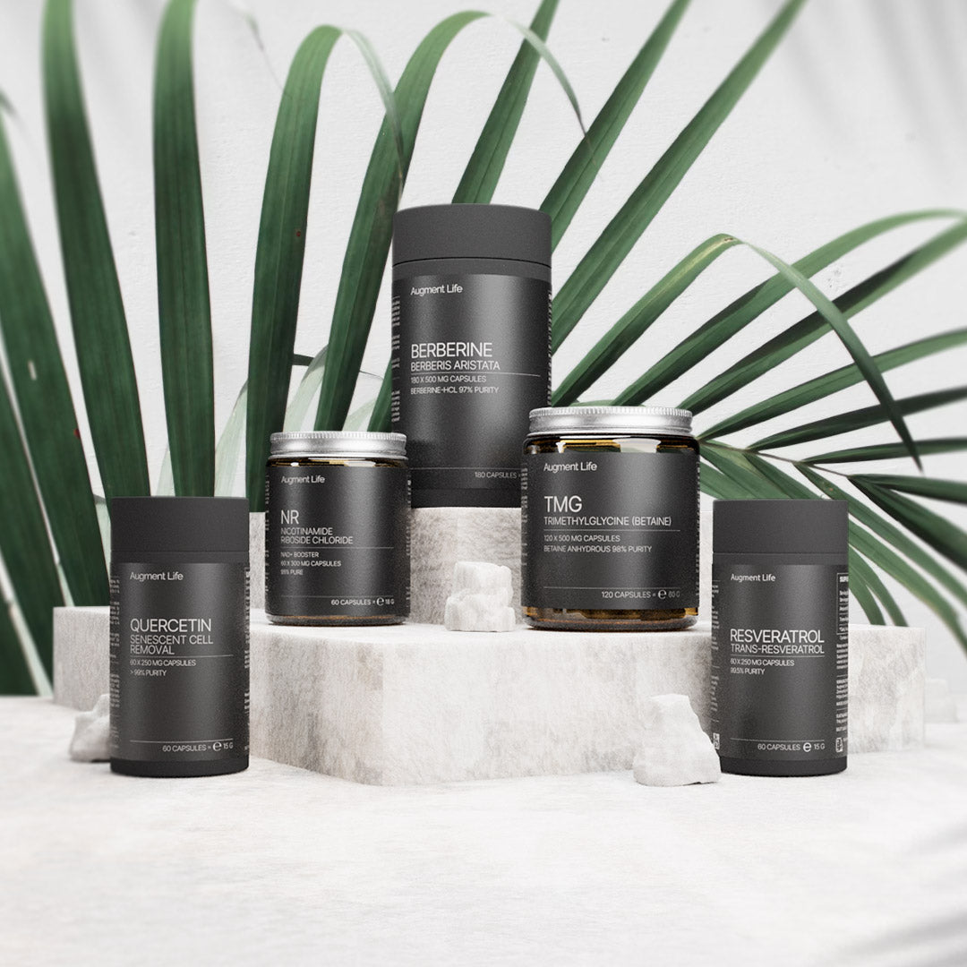 Unser Biohacker-Starterpaket vereint die Kraft von Quercetin, Resveratrol, Berberin und TMG zu einer Kombo für das Wohlbefinden, die schwer zu schlagen ist. Stell es dir als deine persönliche Gesundheitstruppe vor, in der jedes Mitglied seine eigenen Superkräfte einbringt.