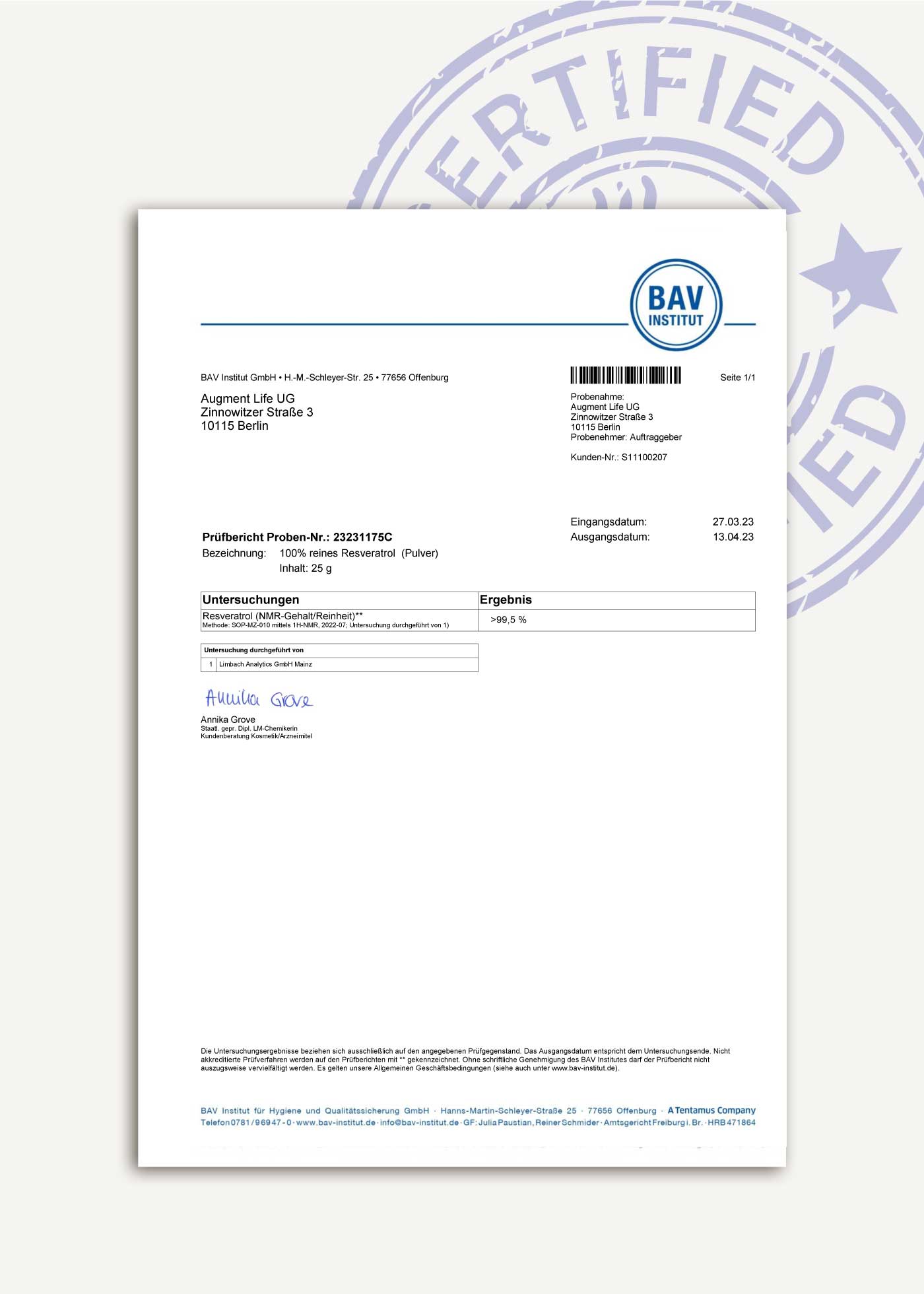 Das BAV Institut testet alle von uns verwendeten Inhaltsstoffe auf ihre Reinheit. Mehr erfahren