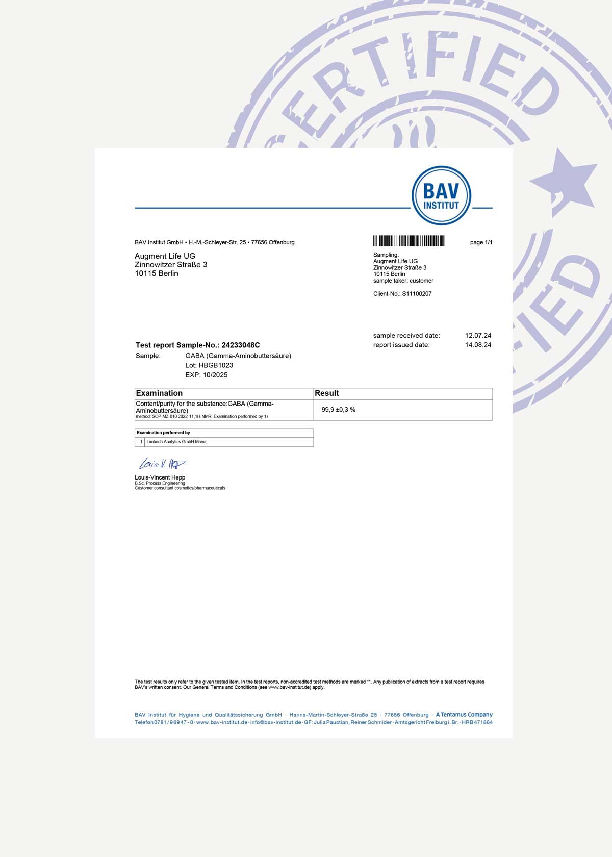 The BAV Institut tests every ingredient we use to confirm purity. Learn More