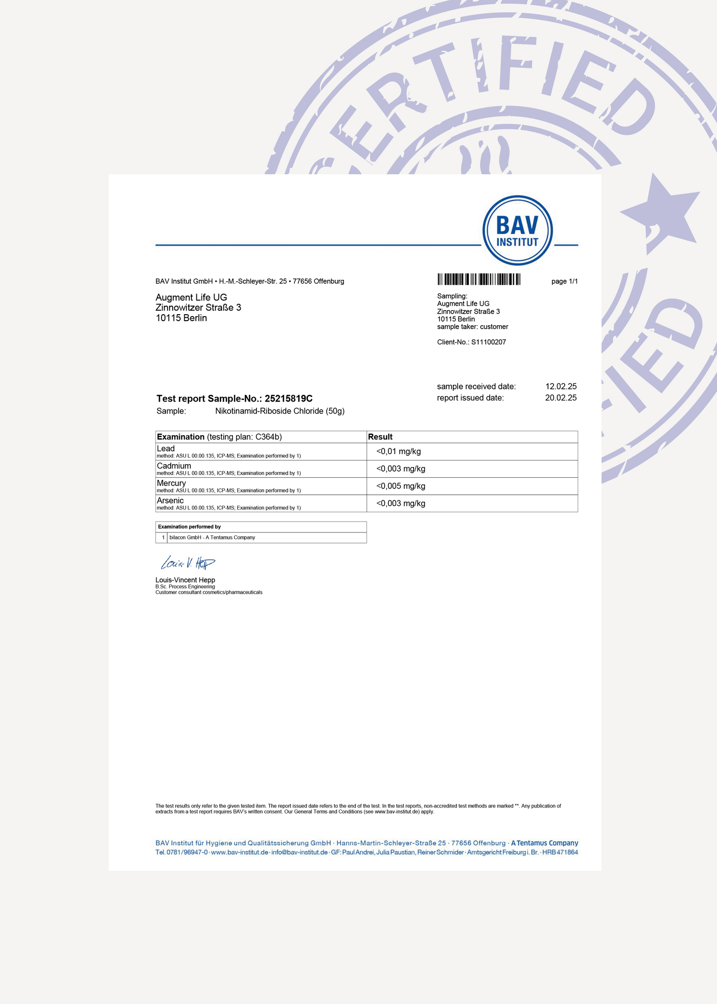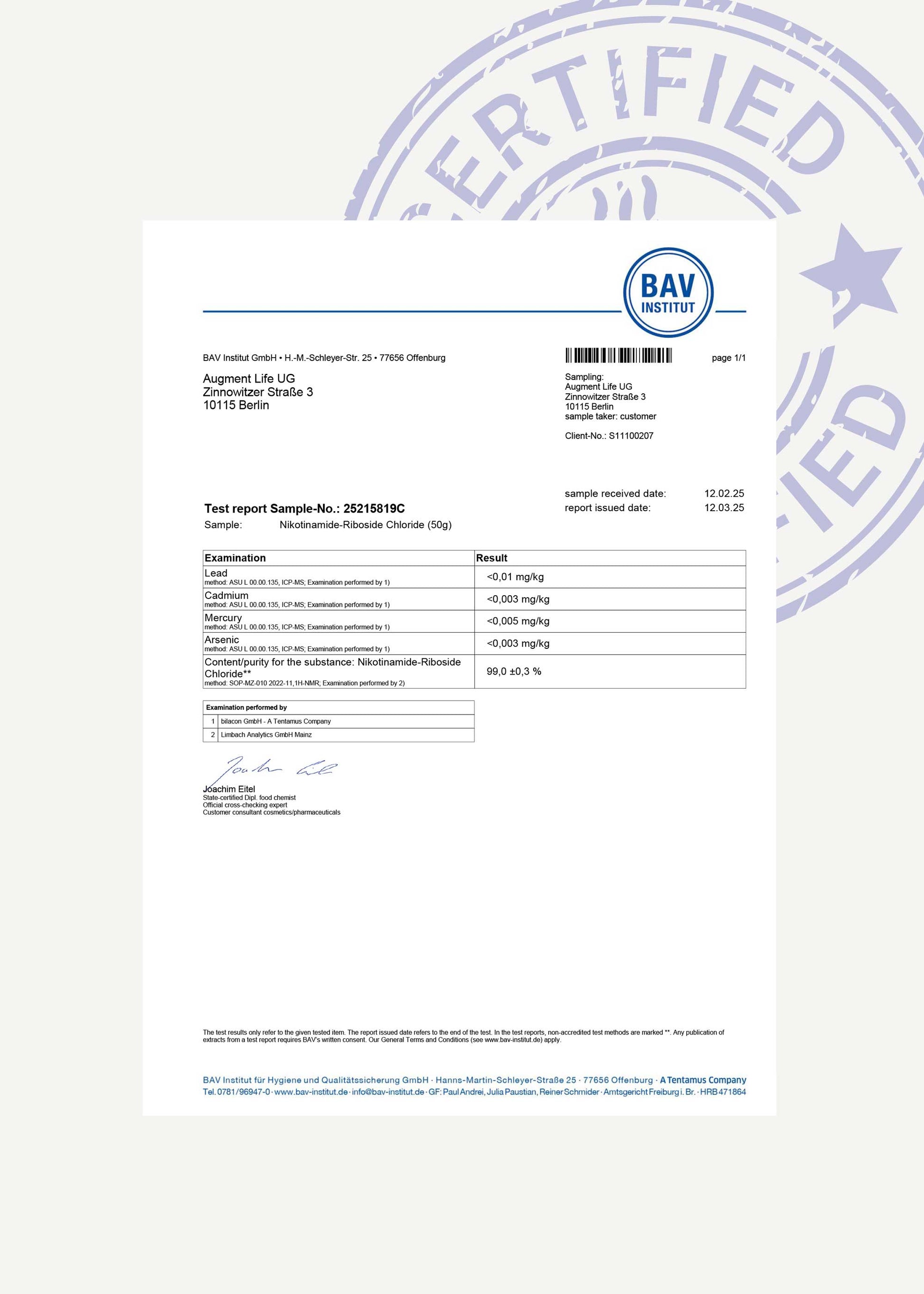 The BAV Institut tests every ingredient we use to confirm purity. Learn More