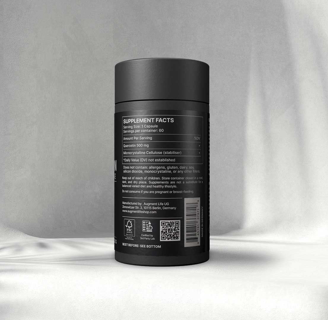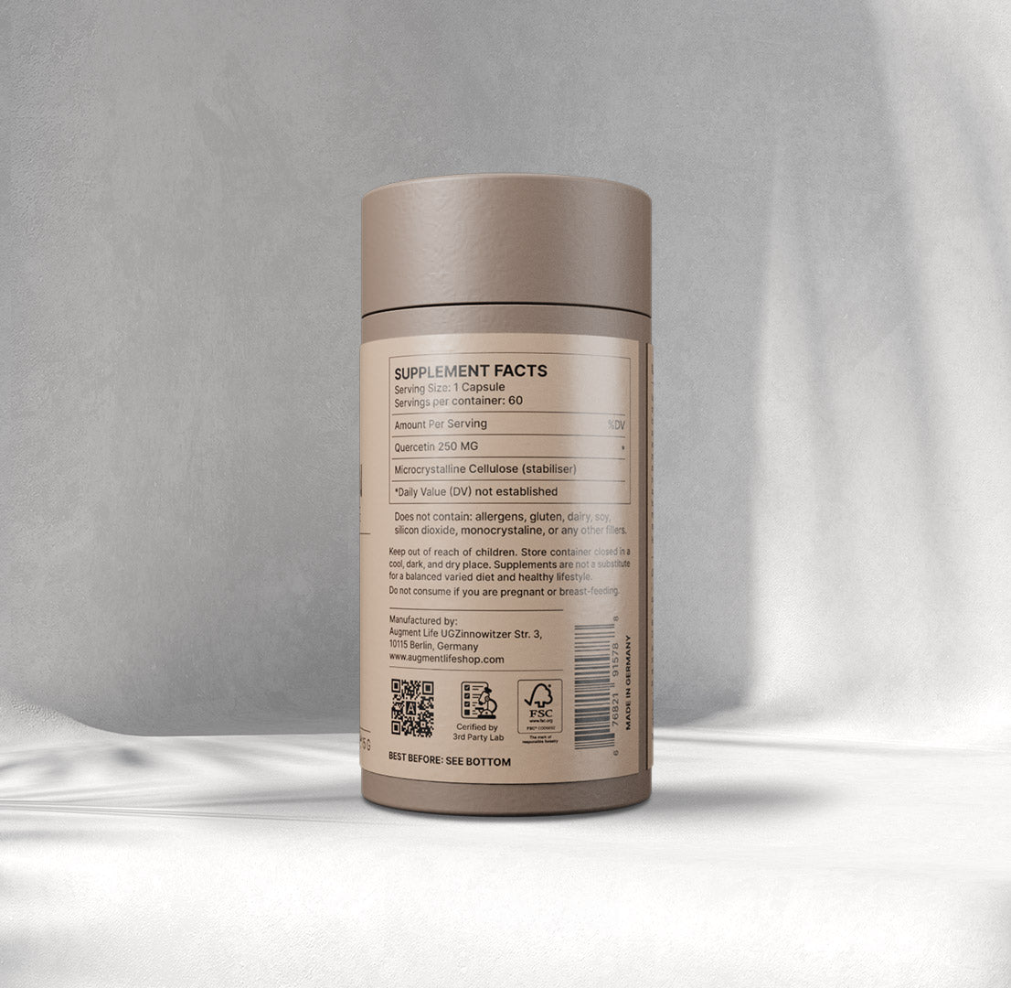 Quercetin is a flavonoid polyphenol that is naturally present in fruits and vegetables such as apples, berries, grapes, onions, broccoli, and many other foods. By scavenging radical oxygen species, quercetin is an antioxidant and exhibits anti-inflammatory, anti-microbial, anti-allergic, and antiviral activity. Most recently, it became popular as a potential partner in anti-aging stacks due to its senolytic activity in in vitro models, which can make DNA repair more efficient.