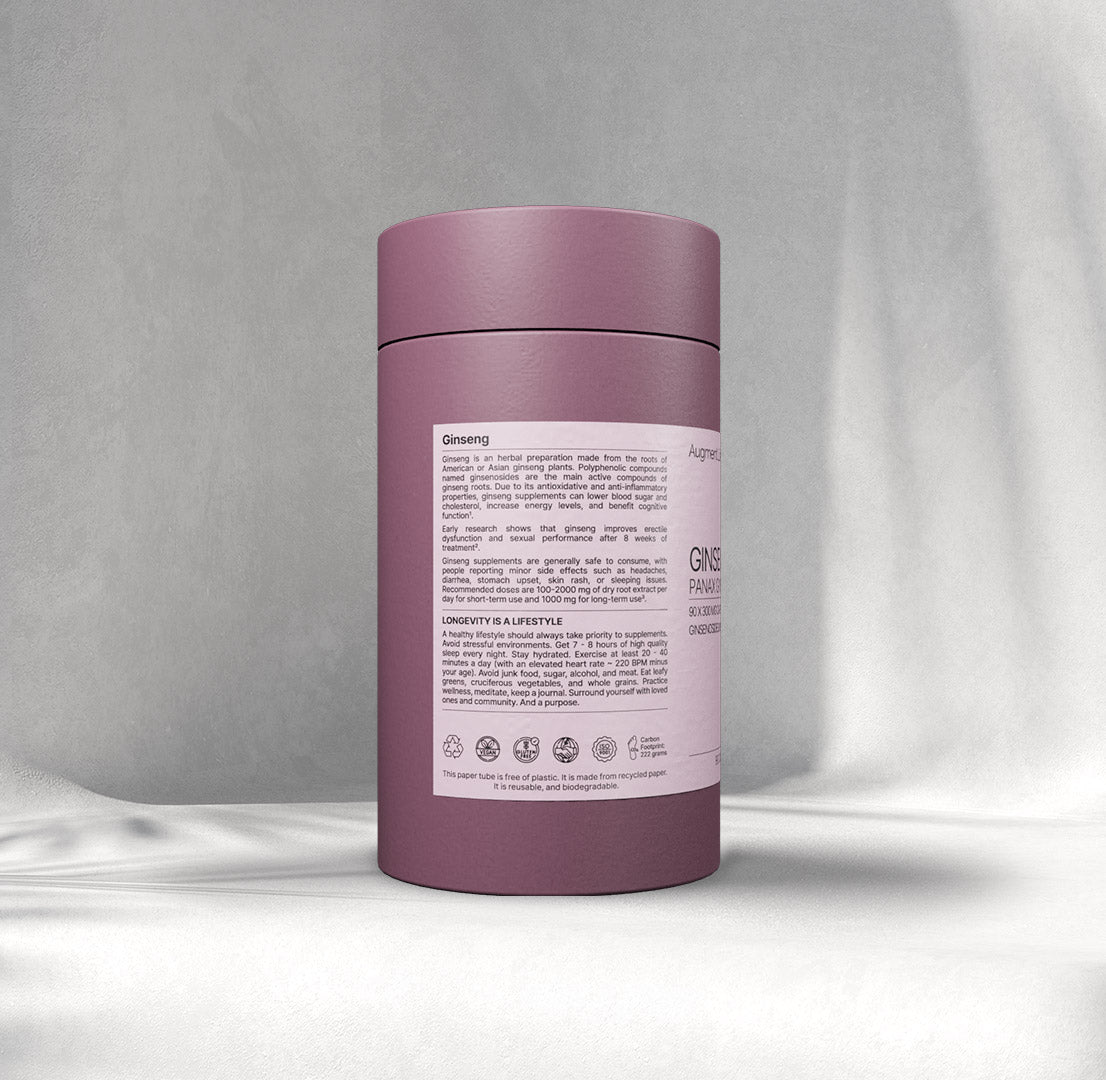 Ginseng is an herbal preparation made from the roots of American or Asian ginseng plants. Polyphenolic compounds named ginsenosides are the main active compounds of ginseng roots. Due to its antioxidative and anti-inflammatory properties, ginseng supplements can lower blood sugar and cholesterol, increase energy levels, and benefit cognitive function. Early research shows that ginseng improves erectile dysfunction and sexual performance after 8 weeks of treatment. Ginseng supplements are generally safe to consume, with people reporting minor side effects such as headaches, diarrhea, stomach upset, skin rash, or sleeping issues. Recommended doses are 100-2000 mg of dry root extract per day for short-term use and 1000 mg for long-term use.