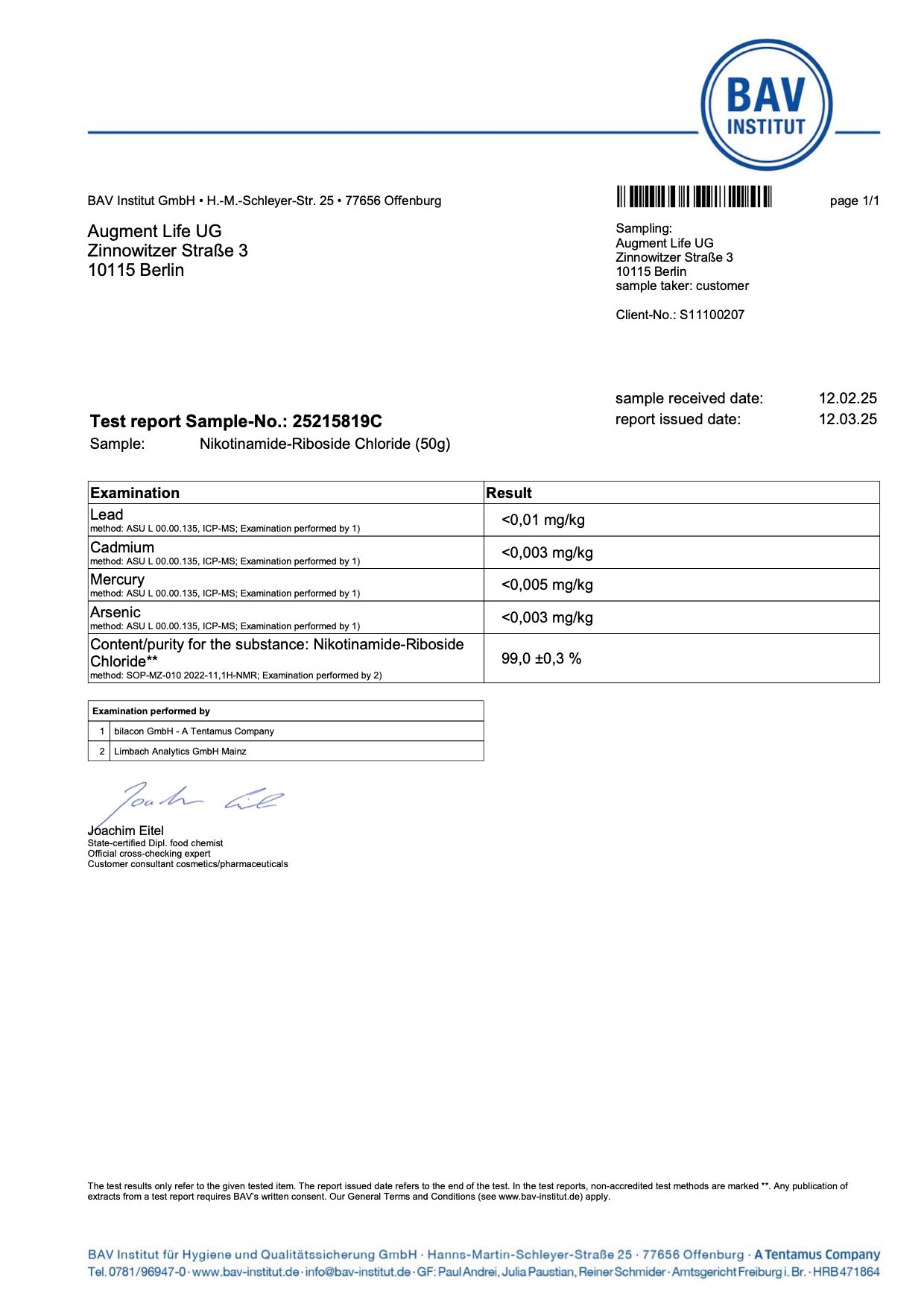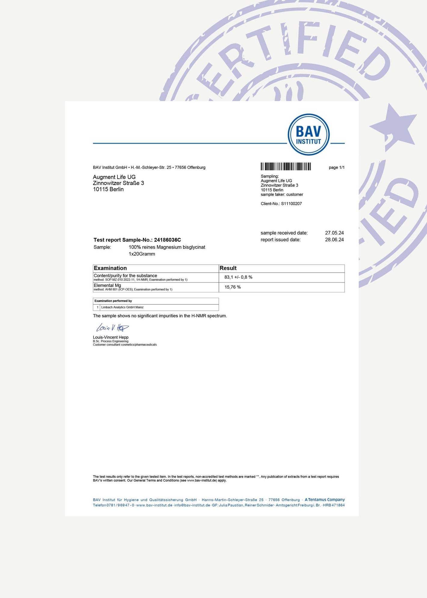 Il BAV Institut testa ogni ingrediente che utilizziamo per confermarne la purezza. Scopri di più