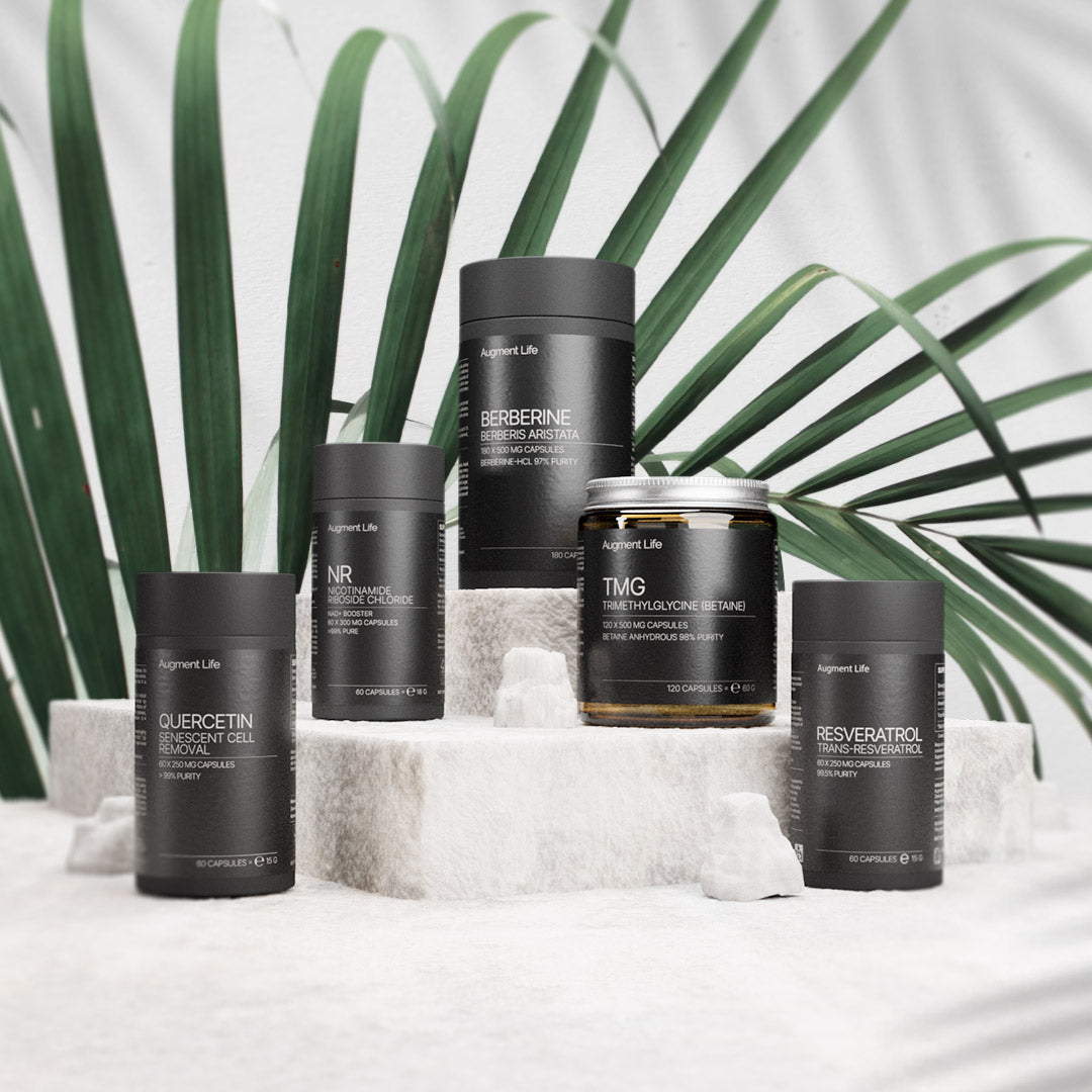 Our Biohacker Starter Bundle brings together the power of Quercetin, Resveratrol, Berberine, and TMG for a wellness combo that’s tough to beat. Think of it as your personal health squad, each member bringing their own superpowers to the table.